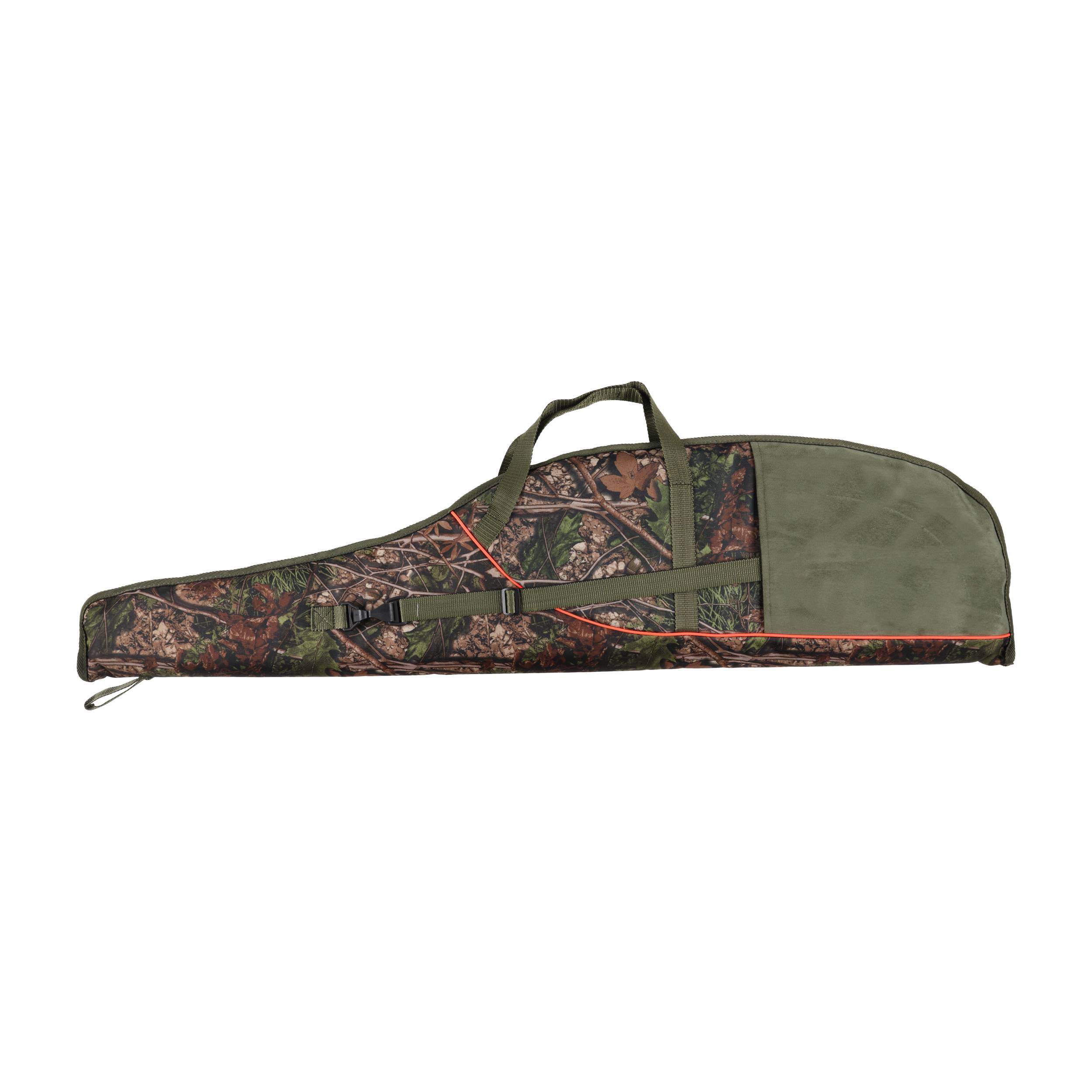 Pokrowiec na broń Forsport 125 cm – leśny kamuflaż, oliwkowy zamsz, haft jeleń ryczy w trawie, biza pomarańczowa