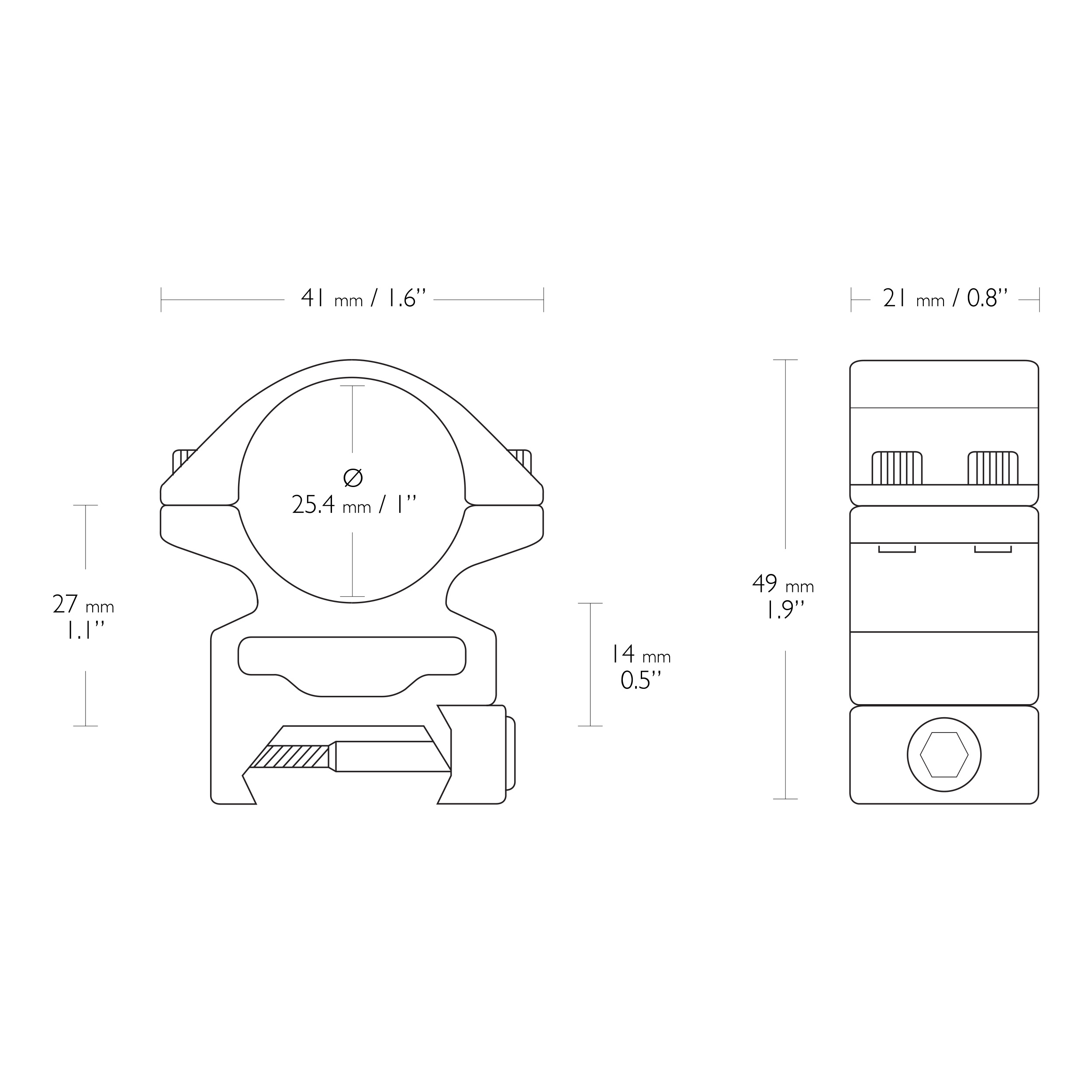 Montaż lunety Hawke Match wysoki 1″ Dovetail na szynę 11 mm